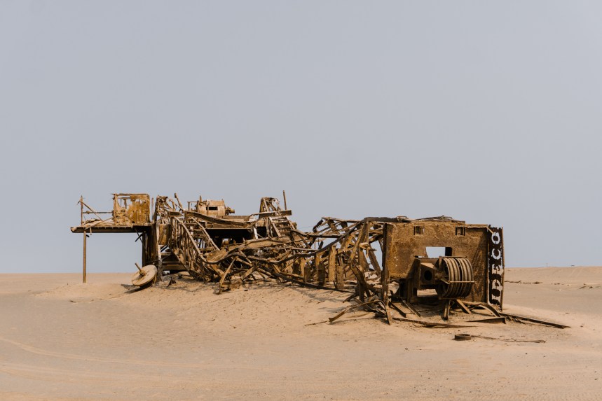 Após passar por Cape Cross, seguimos para o parque da Costa dos Esqueletos, um dos locais mais ermos de toda a Namíbia e, consequentemente, do mundo. É o encontro do deserto do Namib com o mar onde já não existem mais cidades, apenas areia e rochas, alguns animais, e estradas que levam a locais para acampamento temporário.