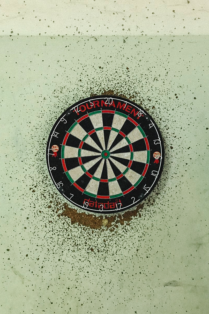 Jogo de dardos mostra os sinais das diversas pessoas que erraram a mira