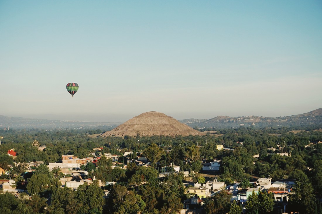 Conhecer esse lugar parecia um sonho distante, algo bem longe num futuro incerto, mas como a vida às vezes nos dá presentes, tive a chance de ir ao México muito antes do que eu esperava. Como teria pouco tempo livre para ser turista, tive que escolher aquilo que conheceria, mas Teotihuacán nunca saiu do topo dela. Meu plano inicial era chegar às pirâmides de forma independente, como meu amigo mexicano me aconselhou, e passar quanto tempo quisesse sem hora para voltar, mas olhando fotos na internet me deparei com alguns balões de ar quente na paisagem e fiquei curiosa.